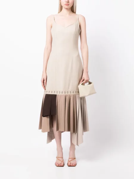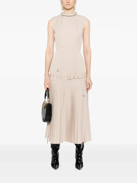 Sukienka midi Rokh plisowana do kolan garniturowa brązowa