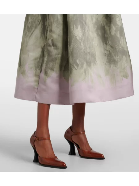 Dries Van Noten Satynowa spódnica midi z nadrukiem do kolan