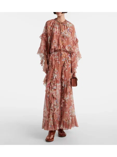 Zimmermann Jedwabna maksi spódnica maxi z falbankami