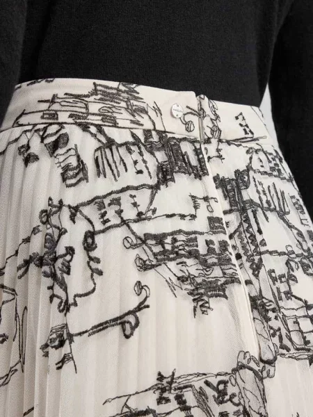 Other Jasnobeżowa Spódnica Midi Tiulowa z Welurowymi Kwiatami i Gumką w Talii Zihrosa