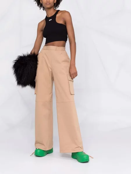 Heron Preston Spodnie z domieszką lnu Vintage Wash Canvas Cargo fason cargo high waist