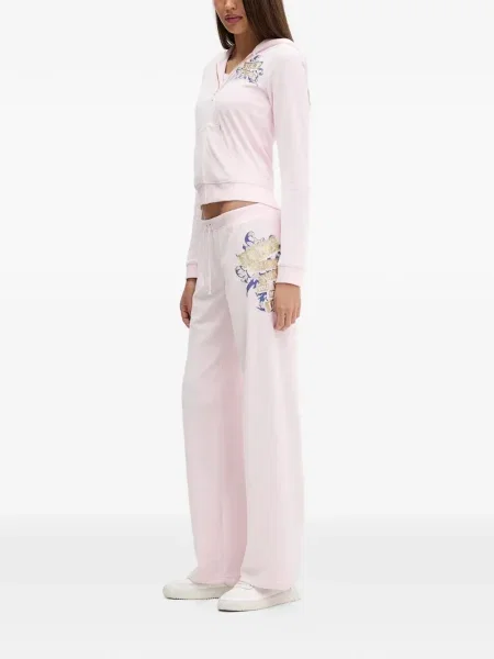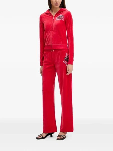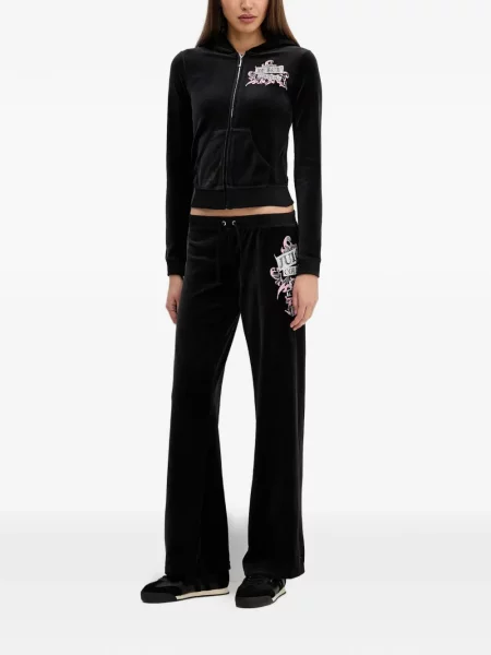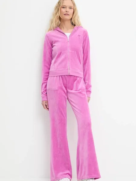Juicy Couture Spodnie dresowe welurowe CAISA LOW RISE PANT gładkie
