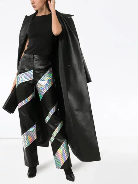 Spodnie skórzane o krotszym kroju dzwony