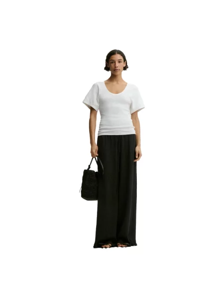 Only Spodnie lniane z szerokimi nogawkami z elastycznym pasem model GOA'