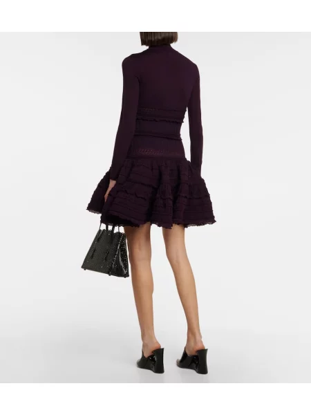 Alaïa Sukienka midi wełniana plisowana do kolan