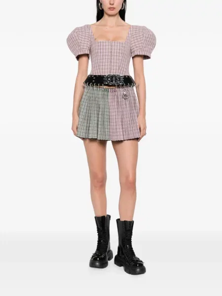 Chopova Lowena Sukienka mini z dekoltem w serek z falbankami garniturowa