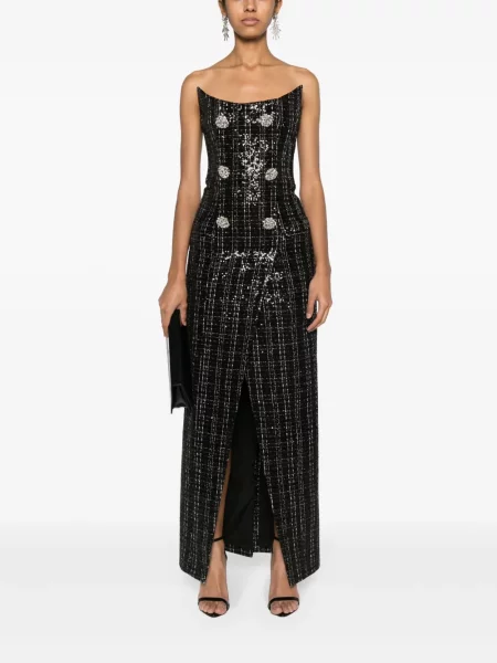 Alberta Ferretti Sukienka maxi z cekinami dwurzędowa garniturowa