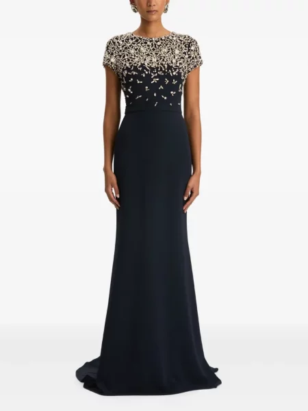 Tadashi Shoji Sukienka maxi z dekoltem w serek plisowana garniturowa