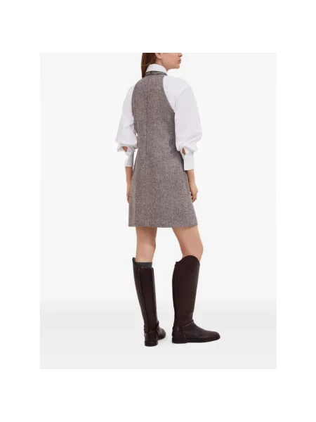 Brunello Cucinelli Sukienka tweedowa w jodełkę garniturowa