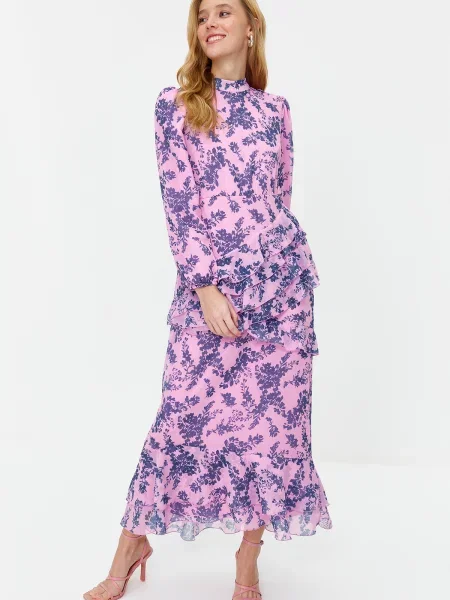 Sukienka midi Trendyol szyfonowa asymetryczna różowa