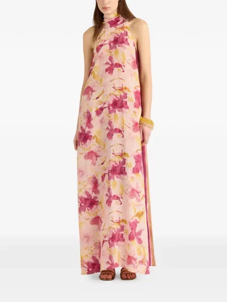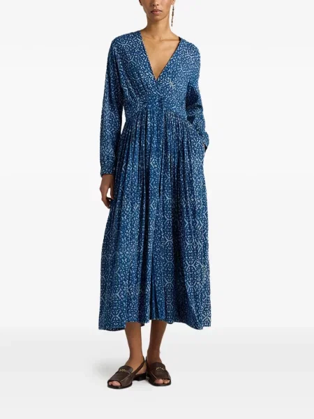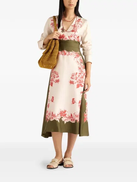 Momoni Sukienka midi w kwiatki z nadrukiem z dekoltem w serek