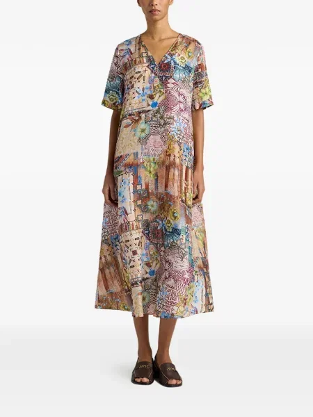 Momoni Sukienka z nadrukiem z dekoltem w serek garniturowa