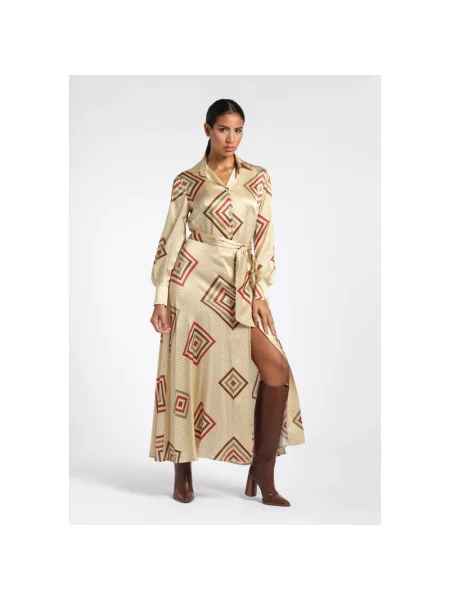 Momoni Maksi sukienka maxi z dekoltem w serek garniturowa