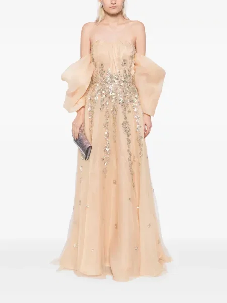 Brunello Cucinelli Wielobarwność sukienka maxi z organzy z dekoltem halter