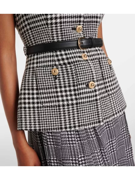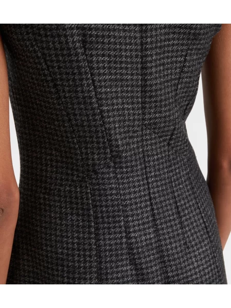 Emilia Wickstead Sukienka midi wełniana w pepitkę do kolan
