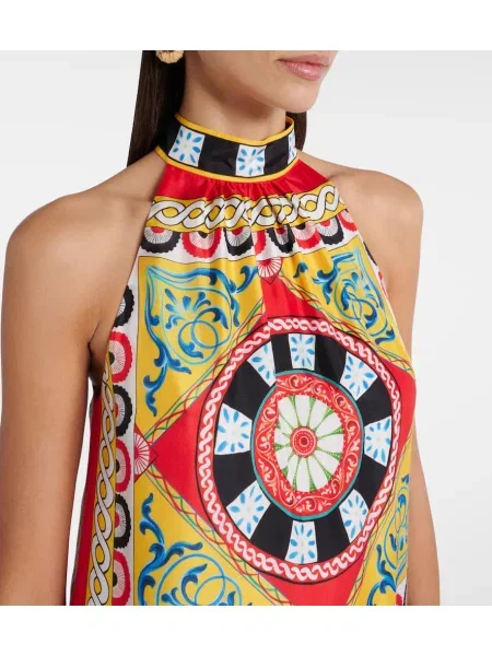 Dolce&gabbana Jedwabna sukienka z nadrukiem z dekoltem halter