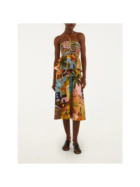 Farm Rio Sukienka midi w tropikalny nadruk do kolan garniturowa
