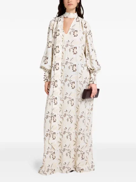 Vasiliki Sukienka maxi w kwiatki z dekoltem w serek garniturowa