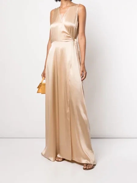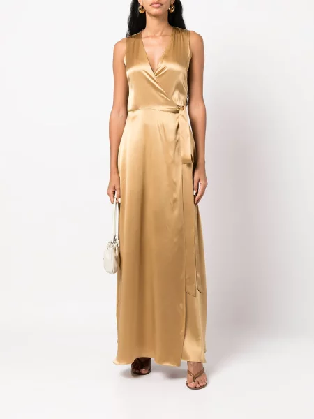 Jedwabna sukienka maxi Voz kopertowa garniturowa złota