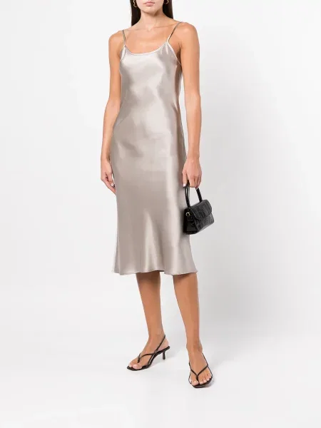 Jedwabna sukienka midi Voz bez rękawów do kolan szara