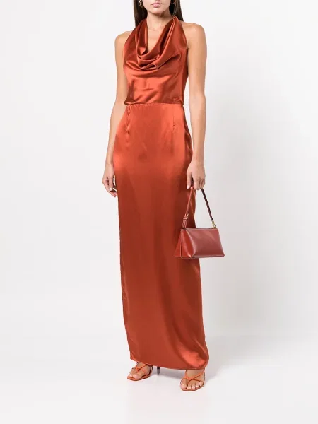 Voz Satynowa sukienka maxi z dekoltem halter garniturowa
