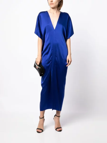 Jedwabna sukienka Voz z dekoltem w serek garniturowa niebieska