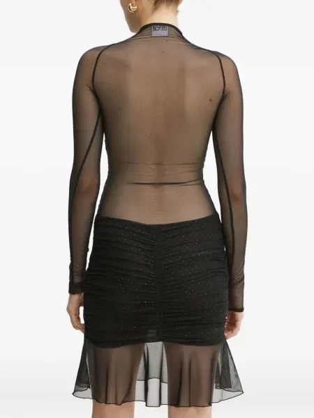 Versace Jeans Couture Aksamitna sukienka jeansowa kopertowa garniturowa
