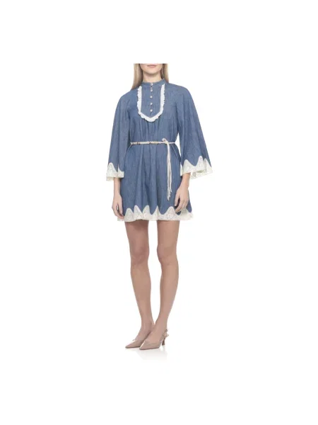 Roberto Cavalli Sukienka jeansowa sznurowana koronkowa garniturowa