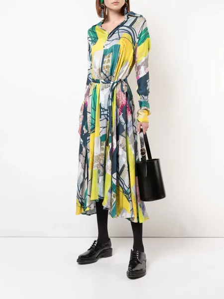 Yohji Yamamoto Sukienka koszulowa wełniana z nadrukiem w abstrakcyjne wzory
