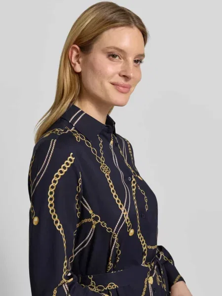 Christian Berg Woman Sukienka koszulowa do kolan z lnu z kołnierzykiem koszulowym