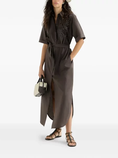 Brunello Cucinelli Haftowana sukienka popelinowa garniturowa