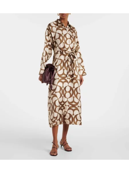 S Max Mara Jedwabna sukienka koszulowa z nadrukiem garniturowa