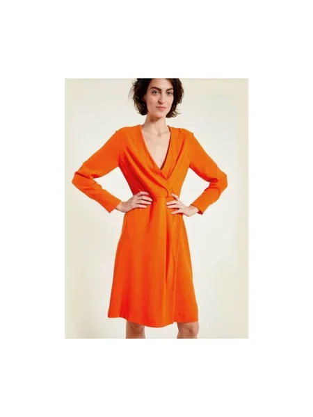 Silvian Heach Długa sukienka maxi wełniana z dekoltem w serek