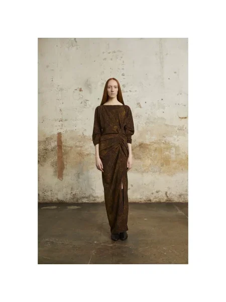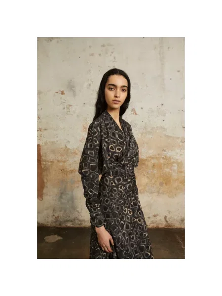 Cortana Długa jedwabna sukienka maxi z nadrukiem zwierzęcym