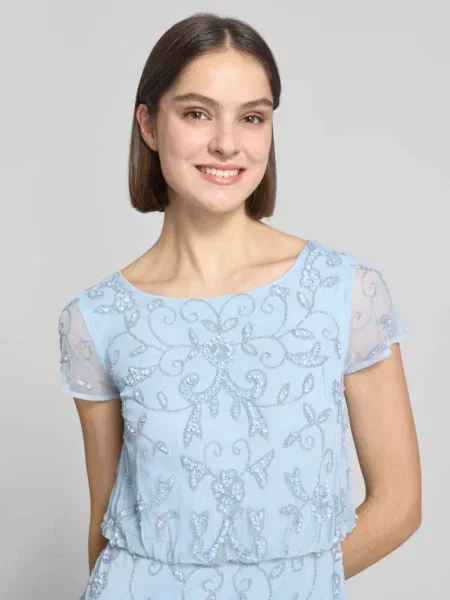 Rich & Royal Długa sukienka z cekinowym obszyciem i obszyciem ozdobnymi kamieniami