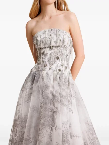 Rotate Birger Christensen Sukienka maxi w kwiatki z koralikami garniturowa