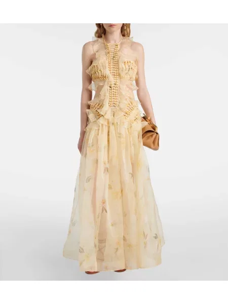 Zimmermann Jedwabna sukienka maxi z falbankami garniturowa