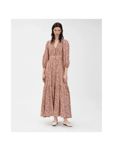 Ivy Oak Maxi Sukienka z Dekoltem w Serek i Balonowymi Rękawami