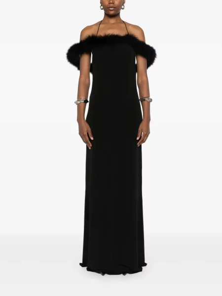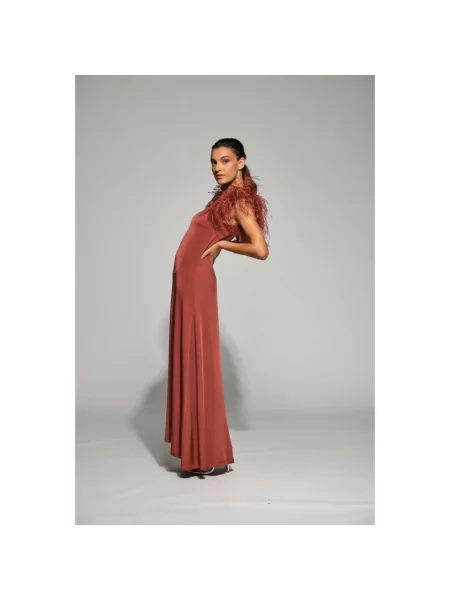 Atu Body Couture Sukienka maxi w piórka z dekoltem halter garniturowa