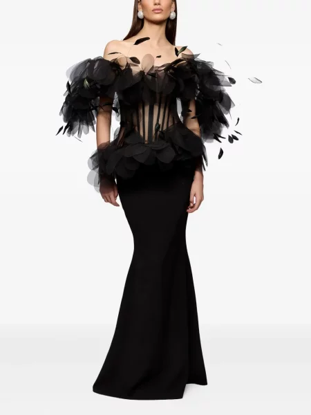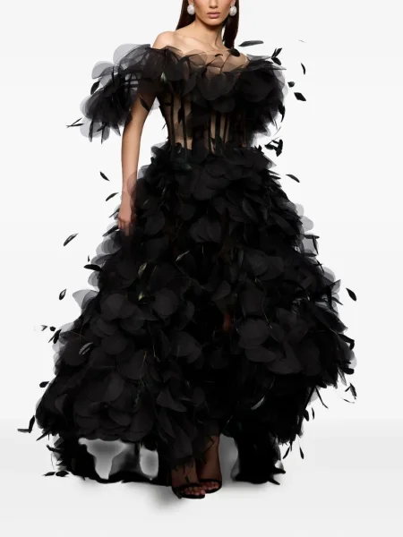 The New Arrivals Ilkyaz Ozel Sukienka maxi w piórka bez ramiączek garniturowa
