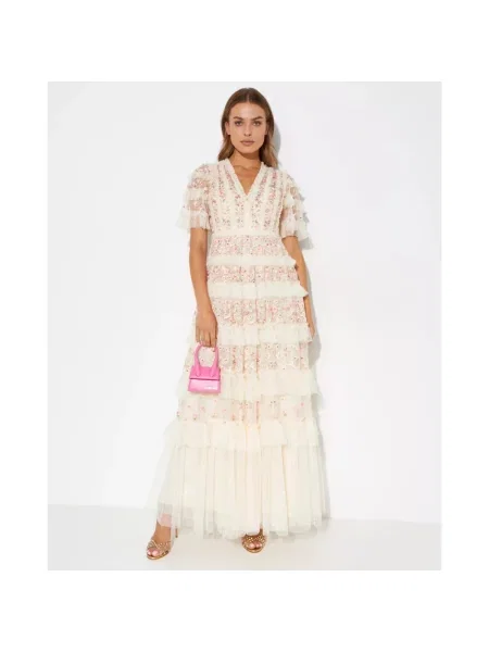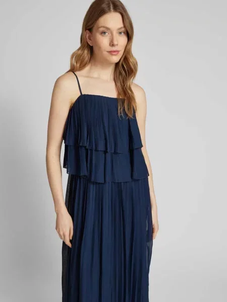 Vero Moda Długa sukienka o swobodnym kroju z szyfonowymi falbanami model MARJORIE'