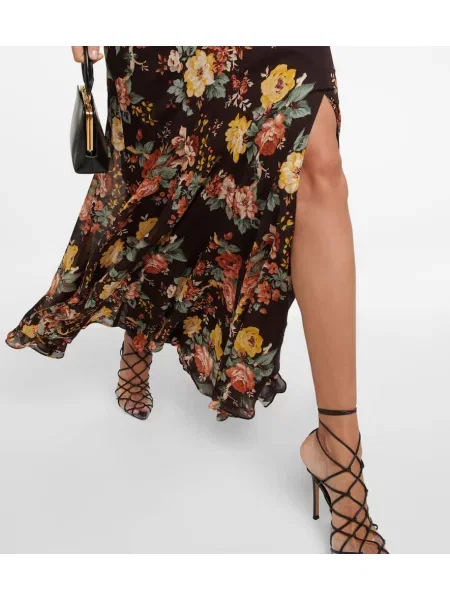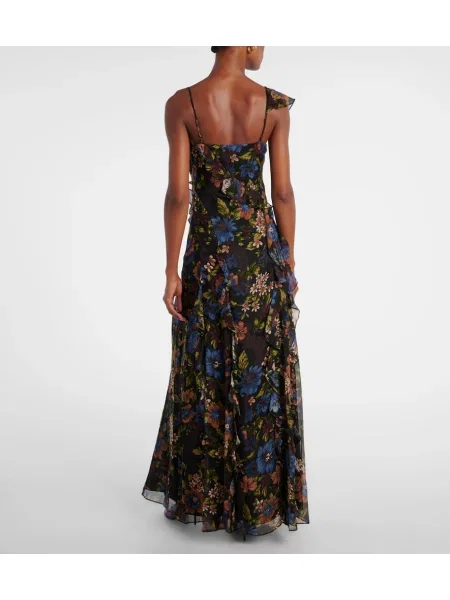 Veronica Beard Jedwabna sukienka maxi w kwiatki z falbankami