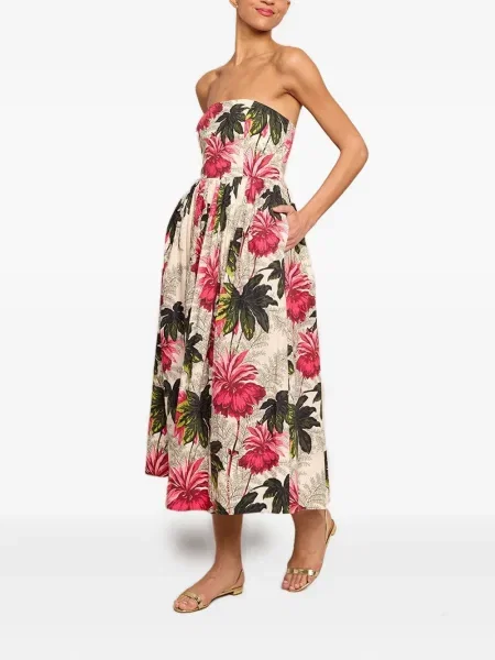 Ermanno Scervino Sukienka midi w kwiatki do kolan bez ramiączek