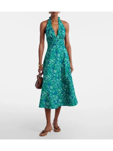 Cala De La Cruz Sukienka midi z nadrukiem z dekoltem halter