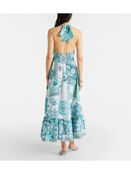 Farm Rio Lniana sukienka midi z dekoltem halter garniturowa