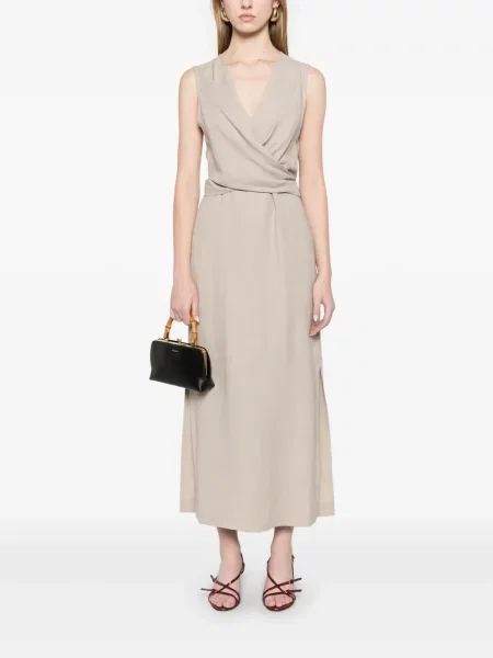 Guido Maria Kretschmer Woman Sukienka kopertowa z mieszanki lnu z dekoltem w serek model ‘GINA’