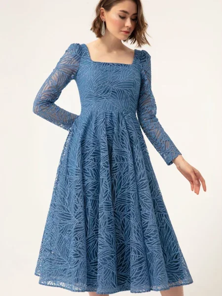 - Sukienki midi z dekoltem kwadratowym