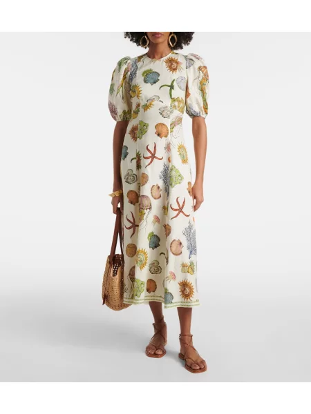 Zimmermann Lniana sukienka midi w kwiatki do kolan