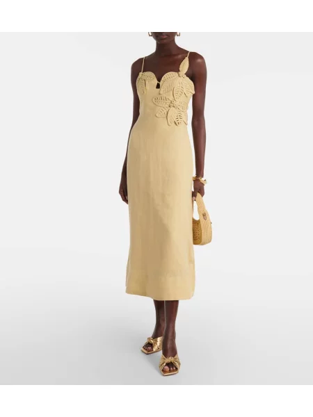 Zimmermann Lniana sukienka midi drapowana do kolan