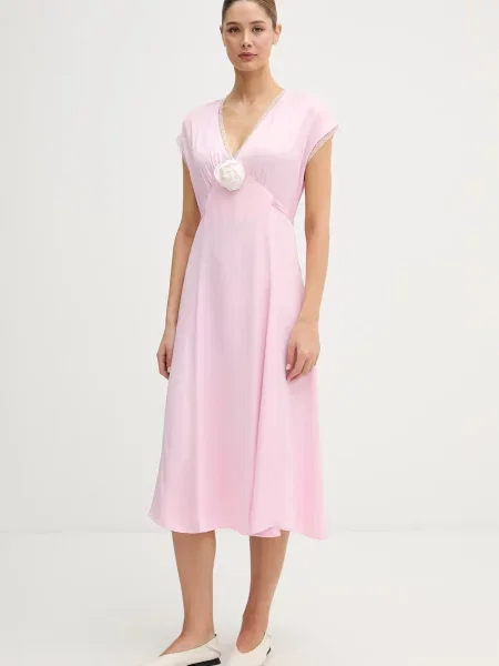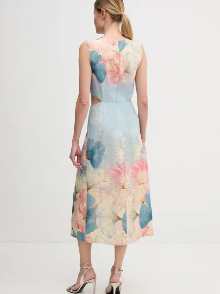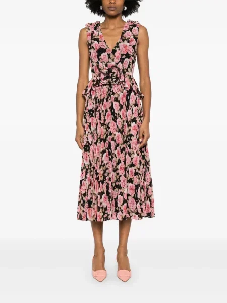 Rotate Birger Christensen Sukienka midi w kwiatki z naszywkami